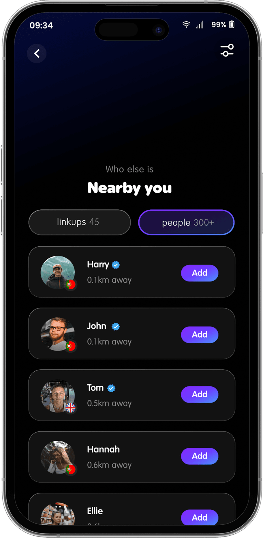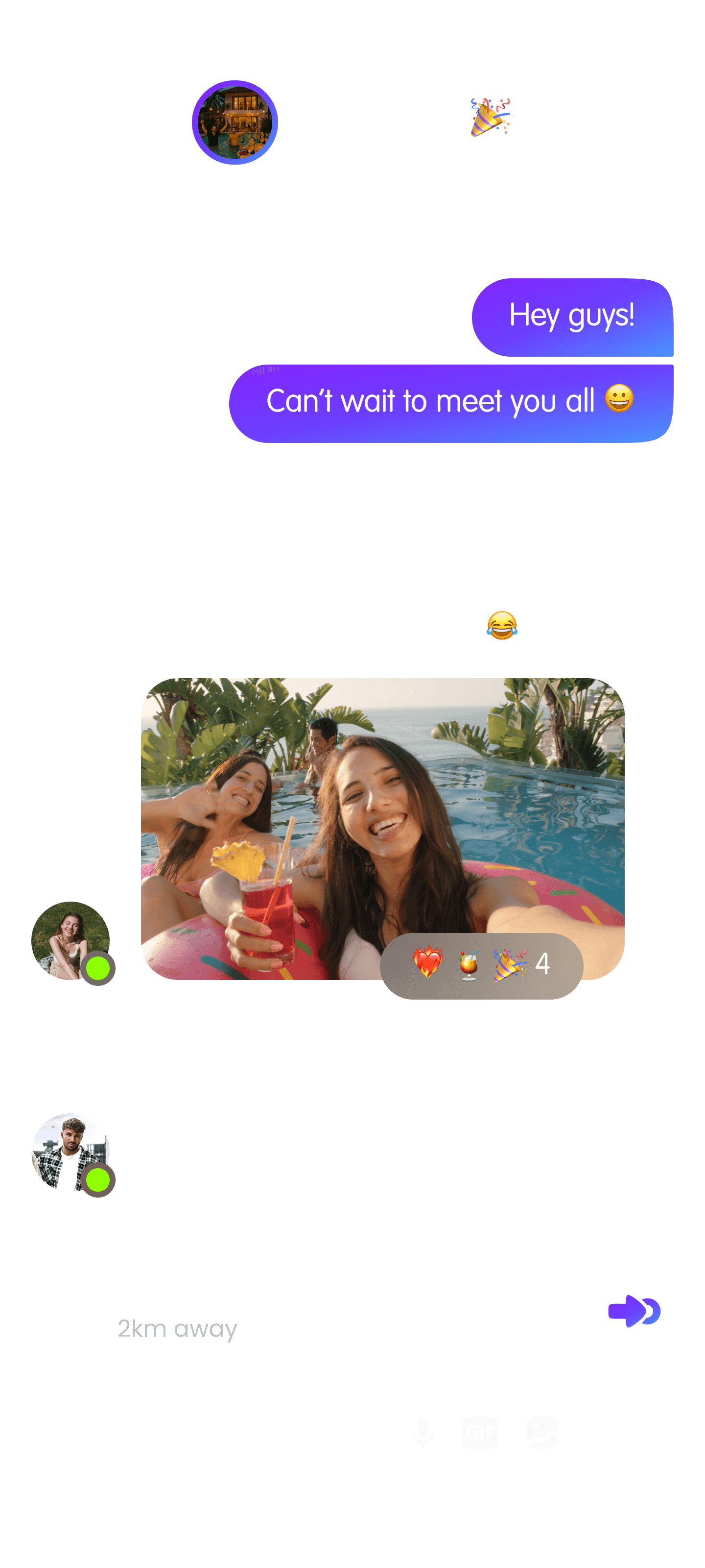 Connect with people nearby who actually want to do the same things you do - whether it’s hitting a workout, catching a gig, or just grabbing a drink.